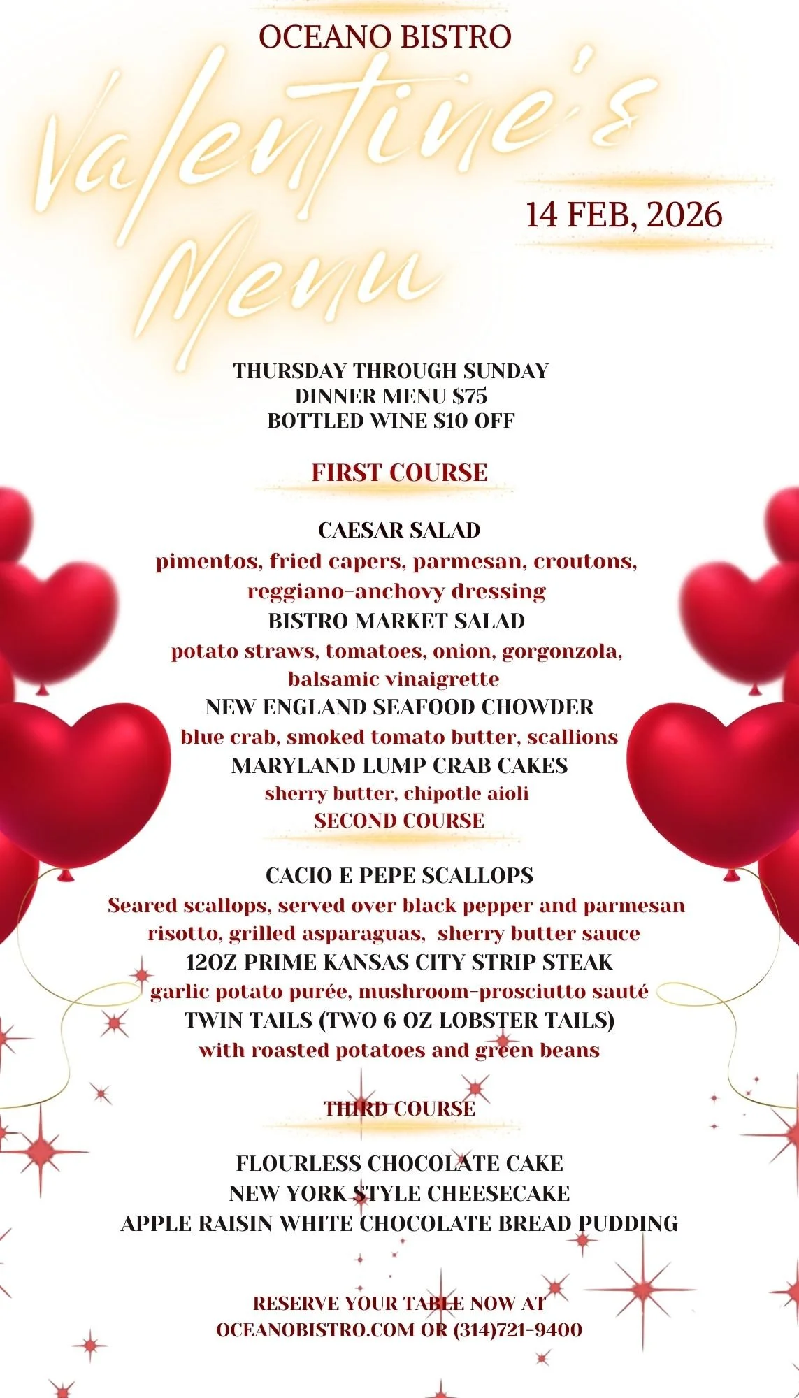 Join us at Oceano Bistro for a holiday event. Reserve now: 314-721-9400.